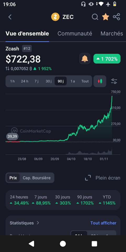 Je l'ai découvert y a quelques jours en suivant le cours du monero, j'avais pas regardé le cours du ZEC avant