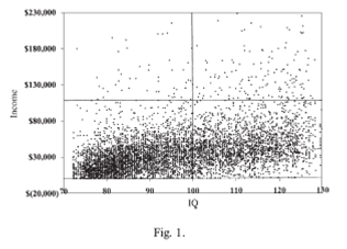 les revenus sont faiblement correlé avec le QI (et encore mon exemple est americain, en france ça pourrait même bien etre une correlation negative que ça ne m'etonnerait pas)