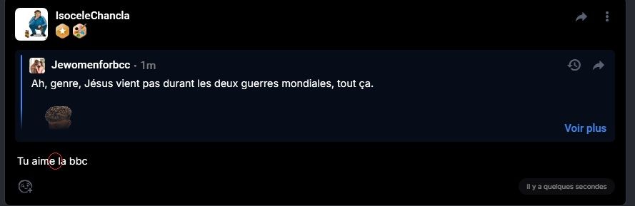 Ah, genre, Jésus vient pas durant les deux guerres mondiales, tout ça.