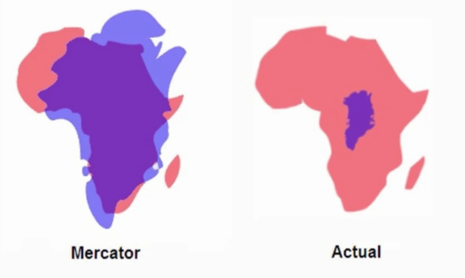 normalement le groenland est minuscule par rapport a l'afrique si on les superpose:
