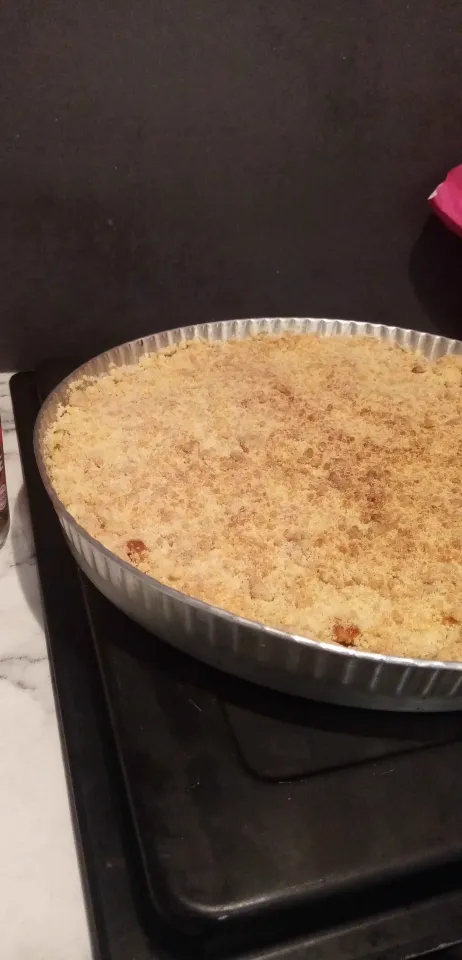 Un crumble aux pommes mais c'est de la margarine, je crois qu'il va pas être tres bon, il refroidit la