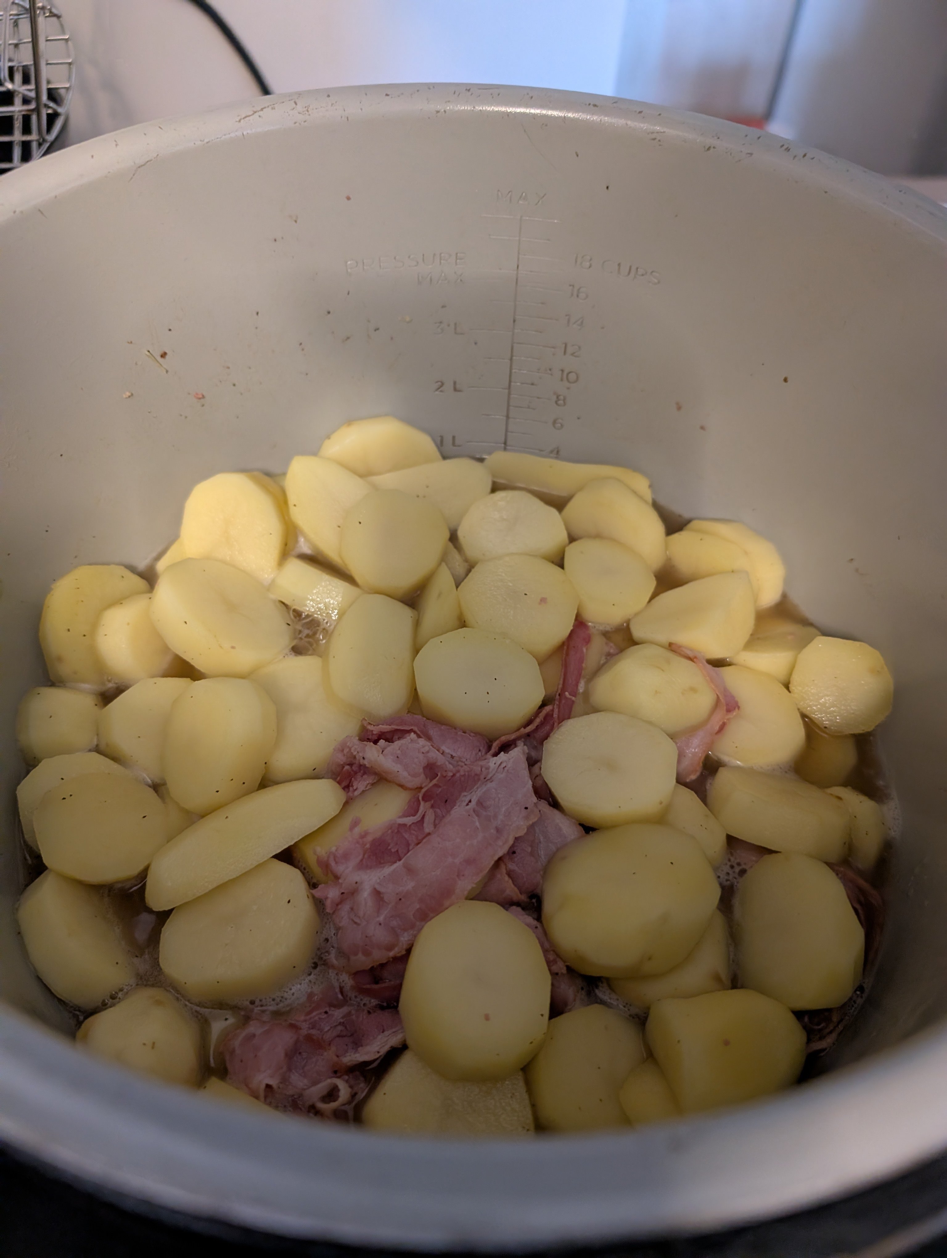 Ensuite rajoutez les patates, mettez un peu de vin blanc (25cl de mon côté)