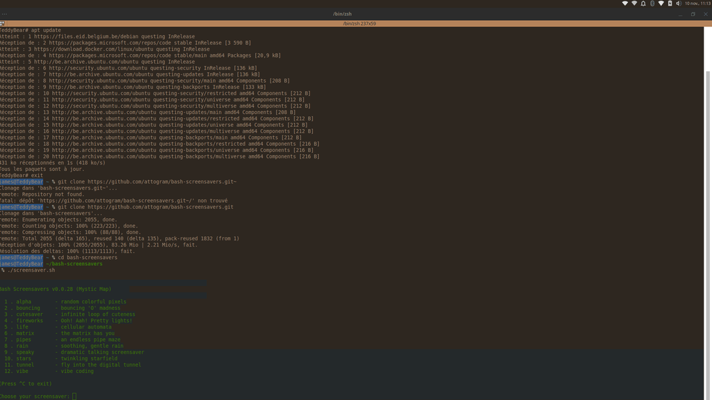 Et voilà un magnifique terminal animé (si ça ne bouge pas ici c'est normal c'est une simple capture d''écran)