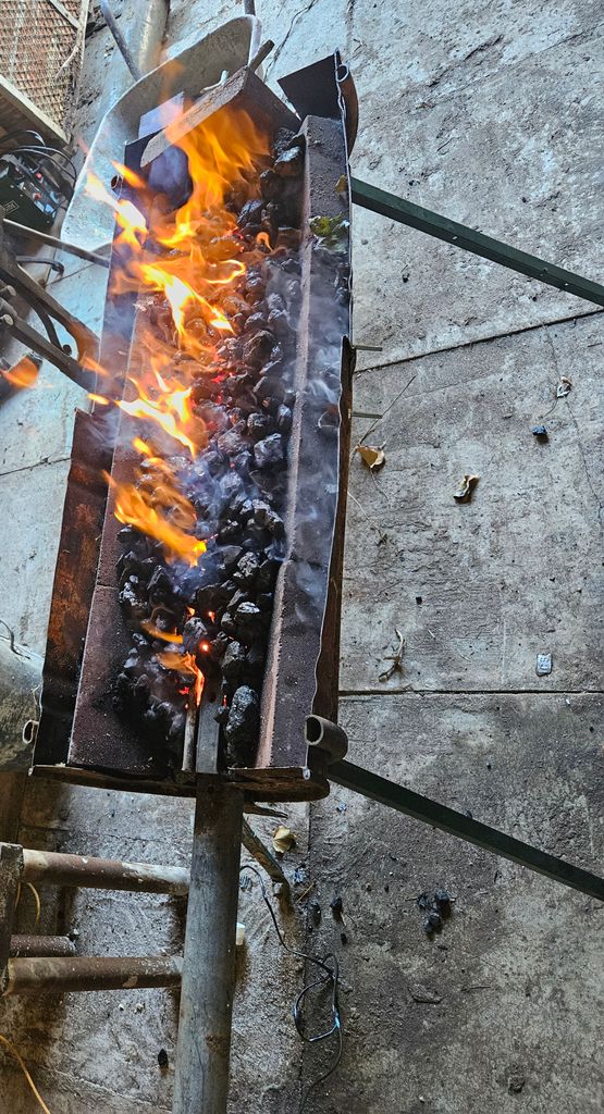 J'ai fabriqué une très longue forge (environ 108cm de surface a chauffer) pour chauffer des très grandes longueurs, et faire des traitement thermique sur des épées par exemple.