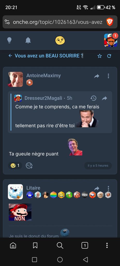 Tu peux critiquer le niveau de reflexion des autres pour essayer de te donner une contenance, mais je suis obligé de te rappeler à toi ainsi qu'à tout le forum ton niveau de répartie