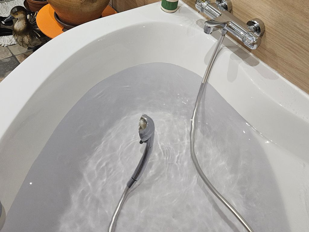 Par contre y'a pas de trou qui permet d'évacuer l'eau lorsque y'en a trop. Vu que j'ai tendance à prendre des bains quand j'suis malade, ça m'est arrivé de m'endormir dedans alors que l'eau continuait de couler, j'ai fait un léger dégât des eaux chez mon voisin en dessous.