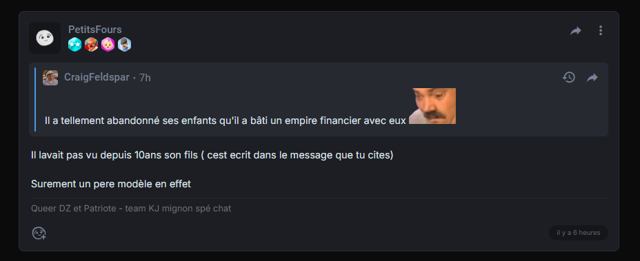 Quelle inversion accusatoire ? cest confirmé par plein de media quil a abandonne son gosse ce qui est la preuve quil a effectivement abandonne son gosse