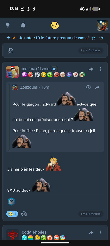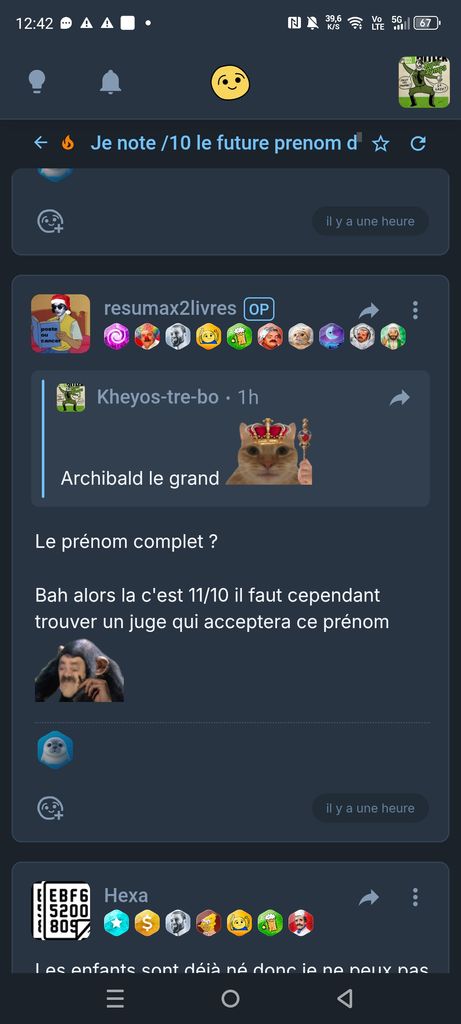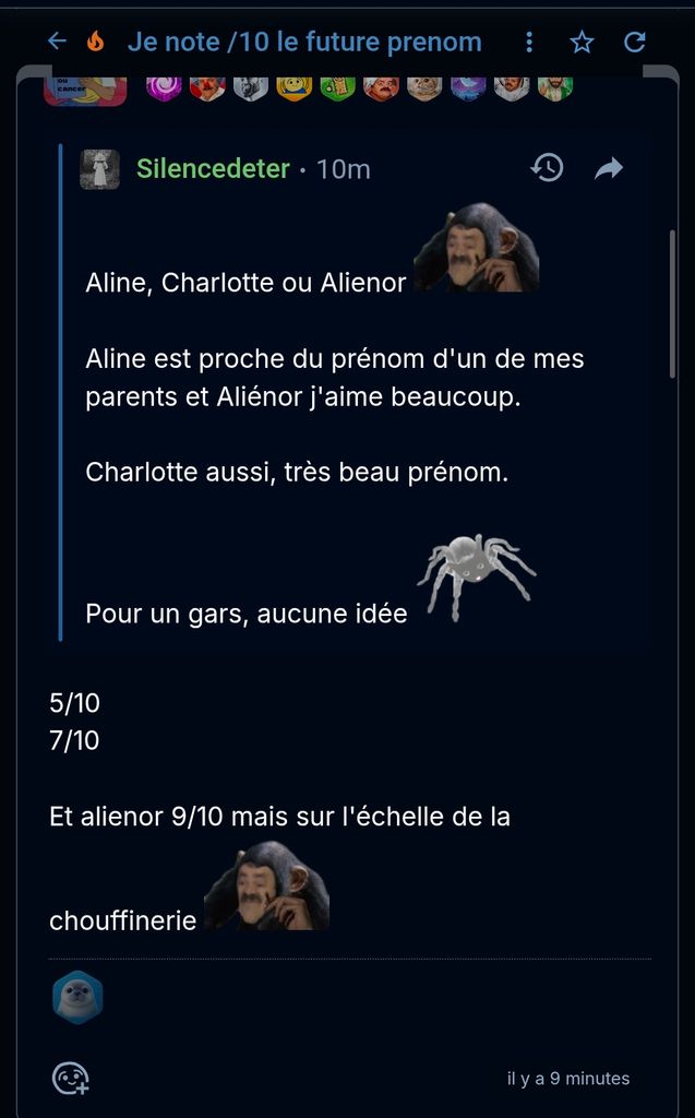 Moi il a mi 5 prénoms sur 6 que j'ai donné en top tier