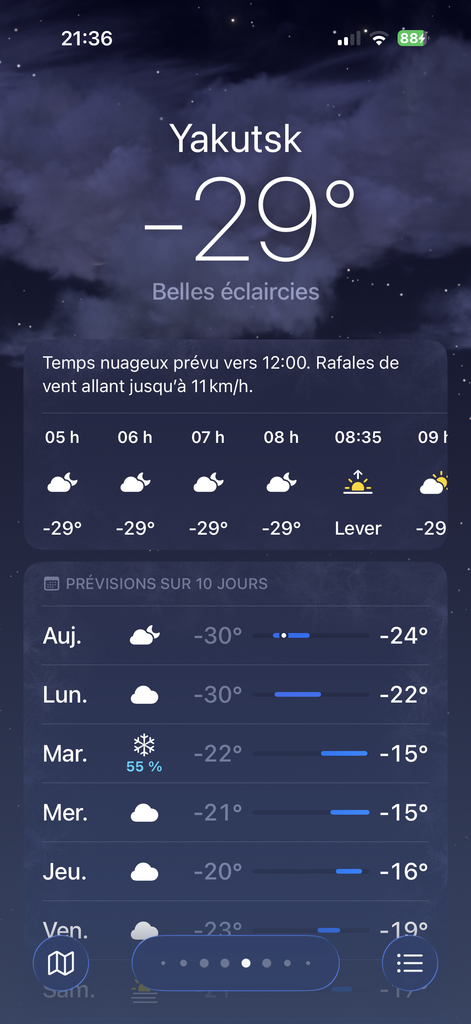 Ouais jai meme vu des -44 en janvier, c’est la ville la plus froide du monde et bizarrement l’été il fait 20/30 degrés