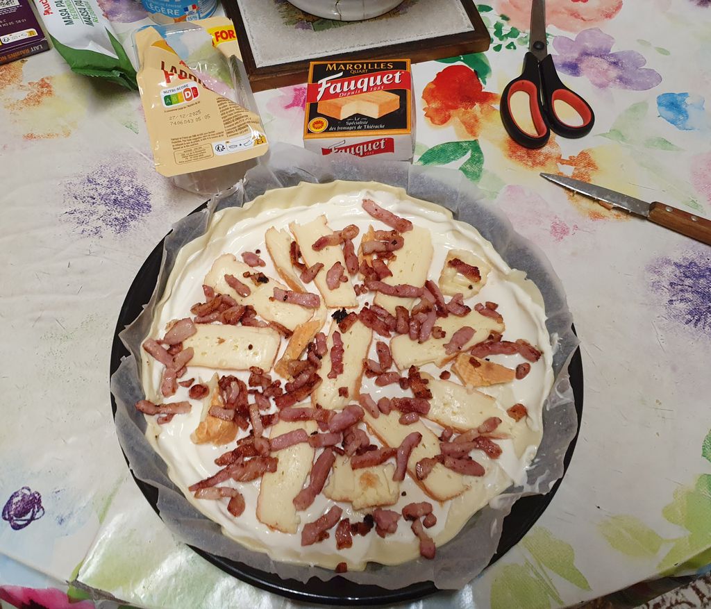 Il me resté du maroilles dans le frigo et une pâte qui arrivé en fin de date..... du coup j'en ai profité.....