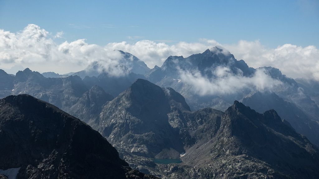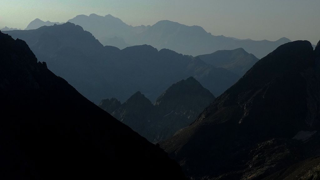 Le somptueux massif du Balaïtous avec ce schiste noir qui a l'air infernal. Les rangées étroites de montagnes typique des Pyrénées ou de la Corse qui donnent cet aspect dentelé, acéré, presque une mâchoire de démon