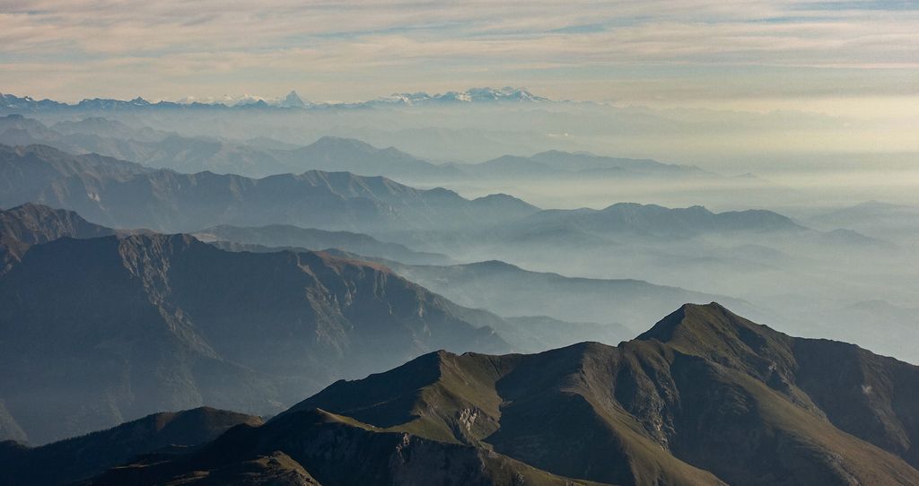 Une superbe vue sur les Alpes italiennes avec la barrière Suisse au fond