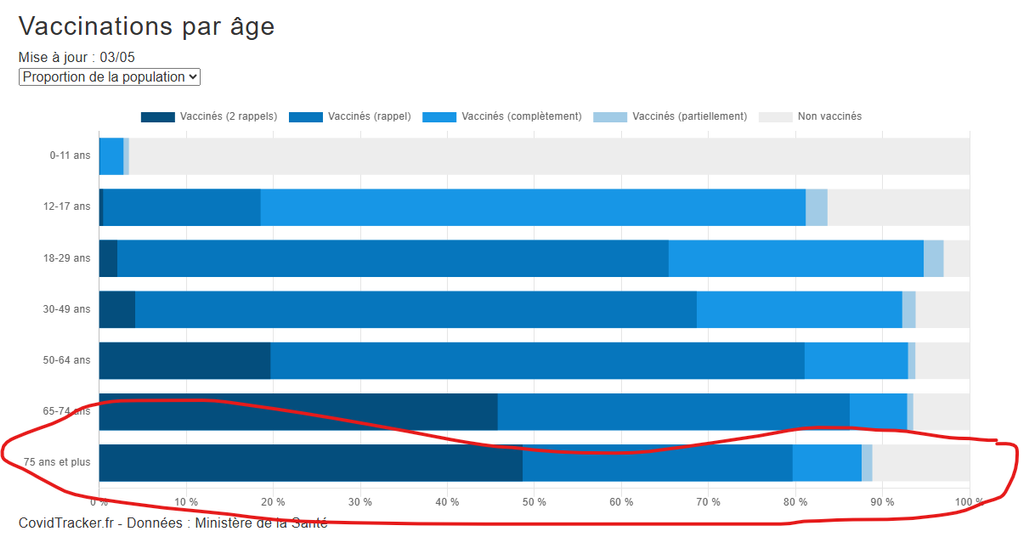Je rappelle que la population la plus fragile (75ans et plus) était la MOINS BIEN VACCINE.