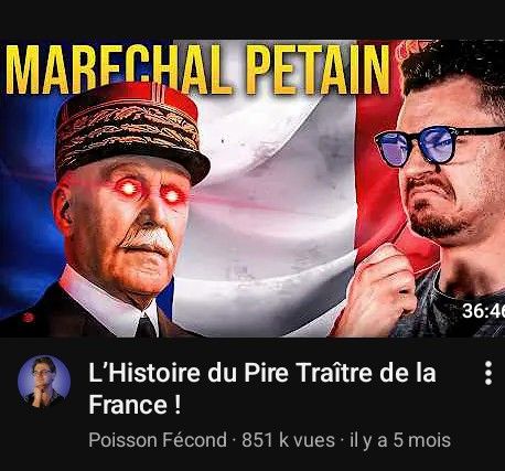 Poisson Stérile n'a toujours pas baisé après sa vidéo dans laquelle il explique que le maréchal Pétain est un méchant