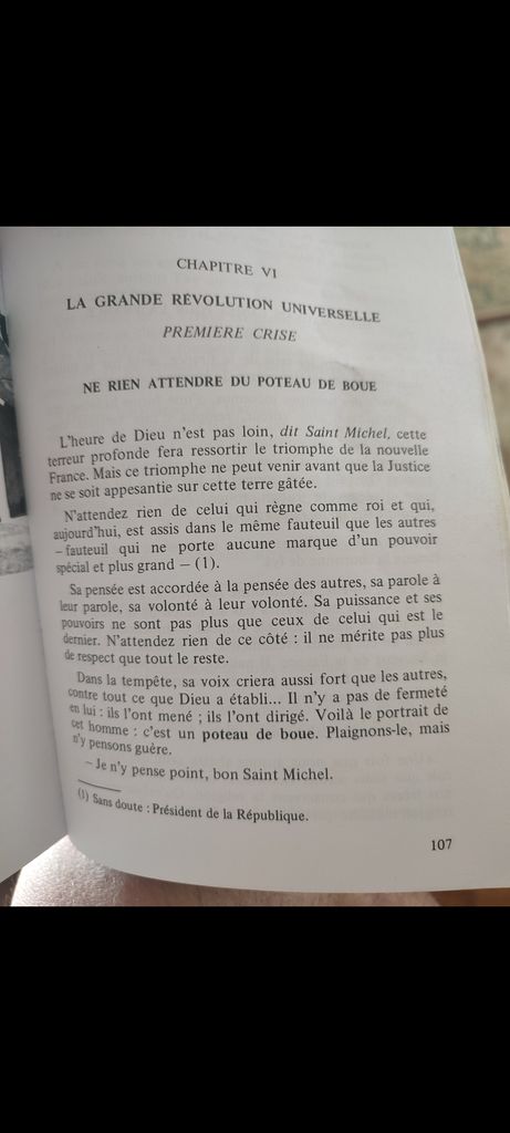 Je ne pense pas qu'il y aura d'élections présidentielles en 2027 (?). Il y aura à un moment un fatal évènement (probablement du président). Une révolution "rouge" et 3 personnages politiques mentionnés dans les prophéties de la Fraudais, 4 avec un président infernal qui me fait penser à Macron. Un "poteau de boue" qui renvoie à peut-être Sarkozy (le père ?). Et deux mauvais génies pour la France. Edouard Philippe/Retailleau ? Melenchon/le secrétaire de la CGT ?