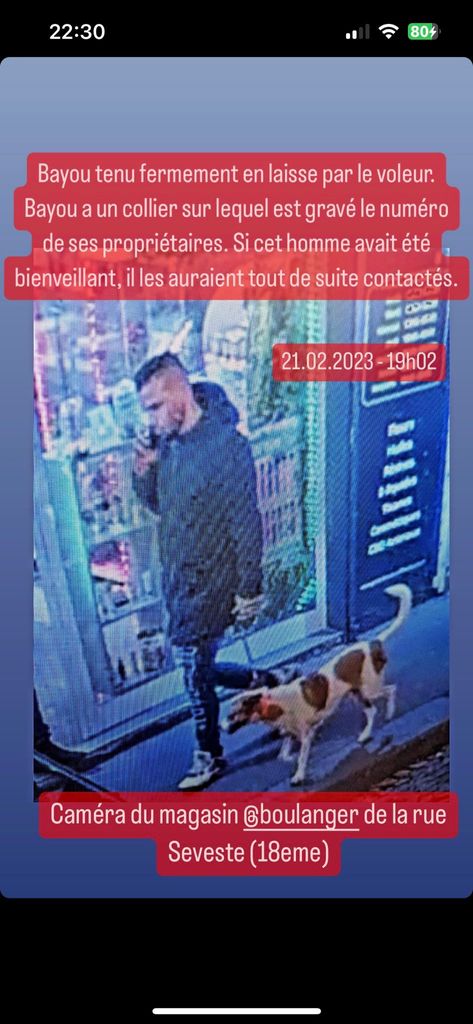 Ce chien s'appelle bayou à était enlevé il existe une photo du mec qui volé le chien