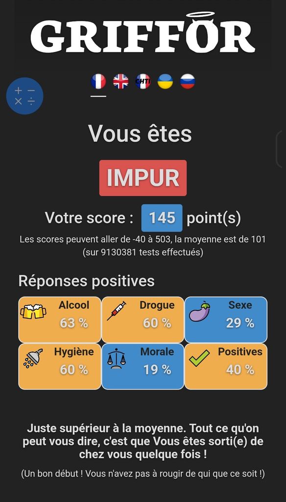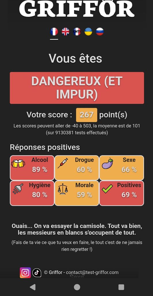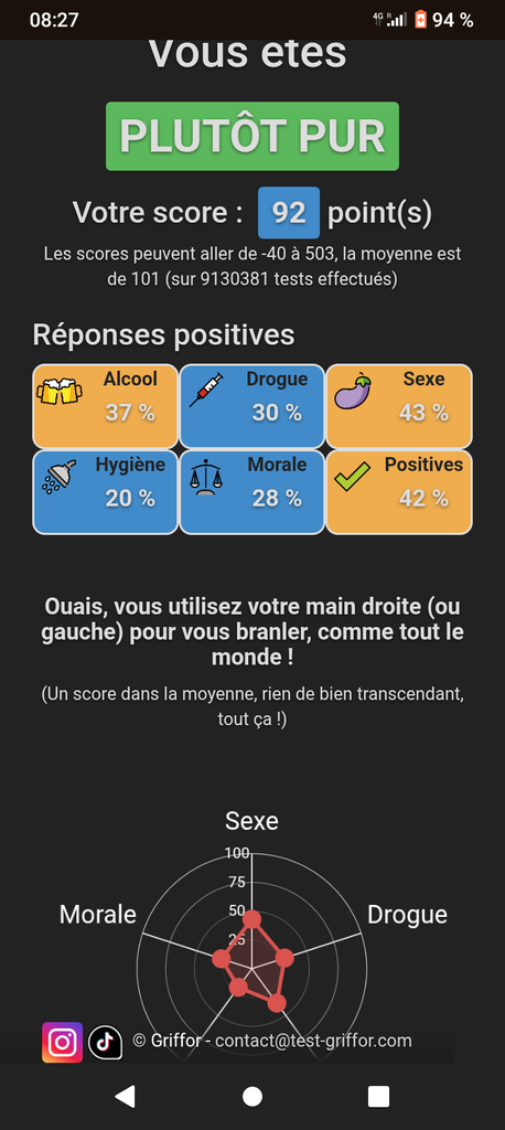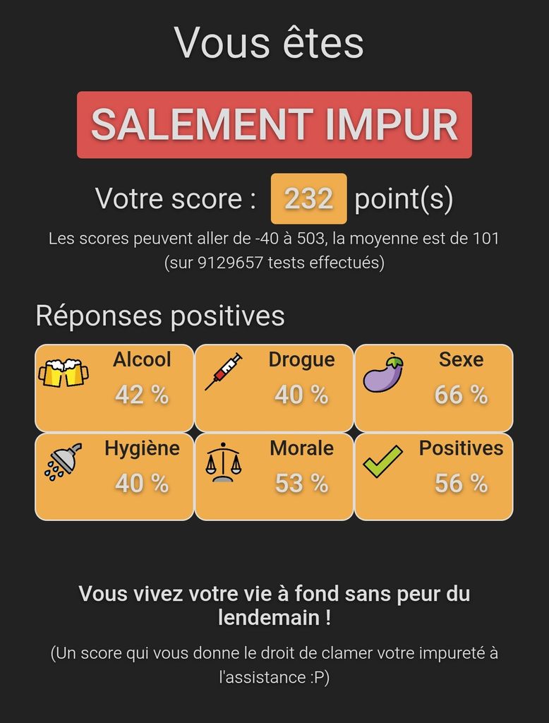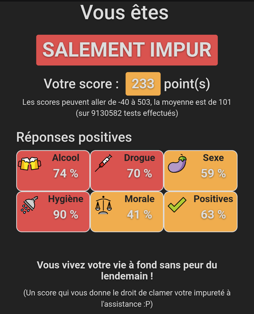 De la merde ce test, car l'important n'est pas ce qu'on fait mais ce qu'on pense