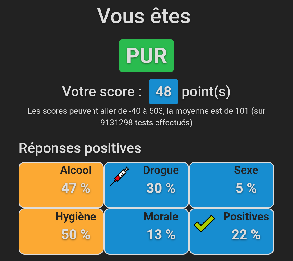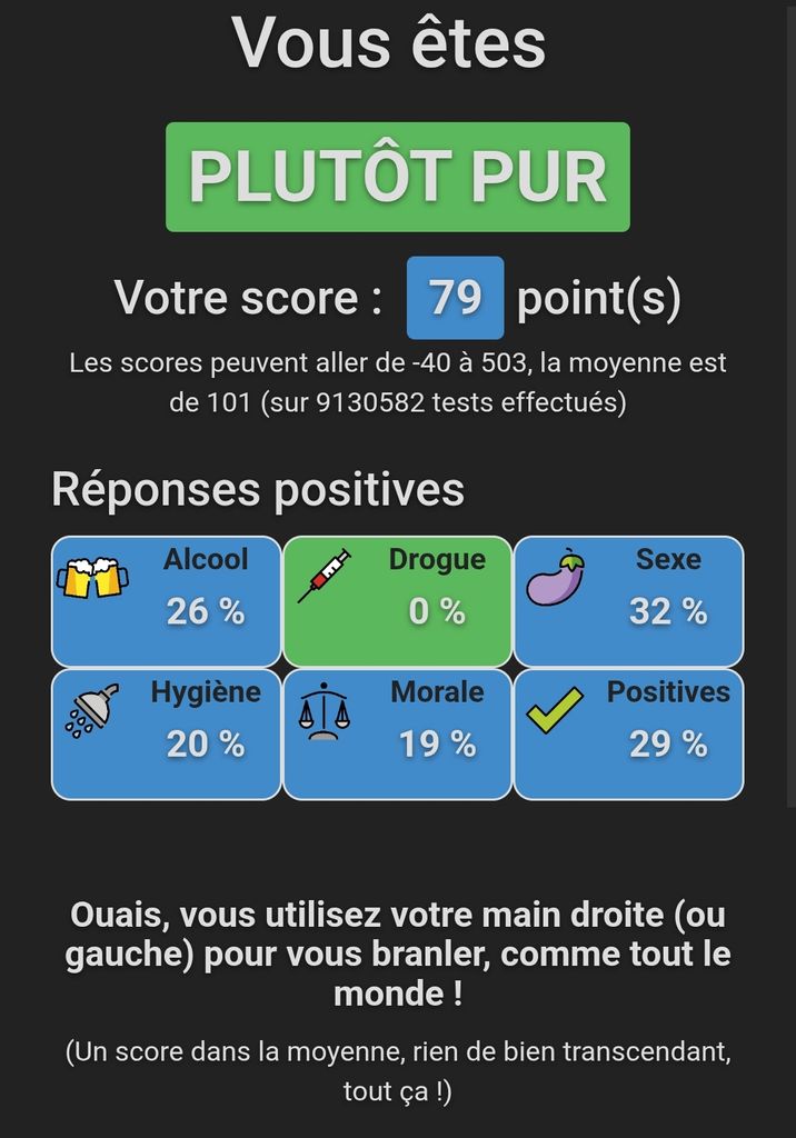 Faudrait que je recommence le test pour ma pureté actuelle mais flemme