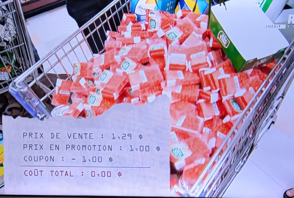 Y'a un autre truc du genre c'est une émission sur les radins et t'a des gens a la caisse qui paye que en coupon réduc