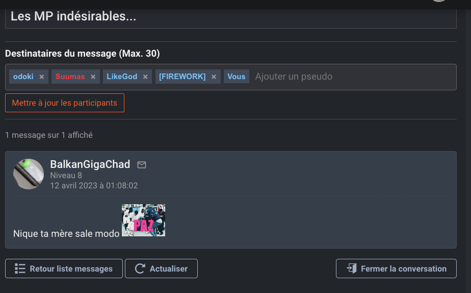 "T'es un 0 tout?, bah on te dégage du forum"