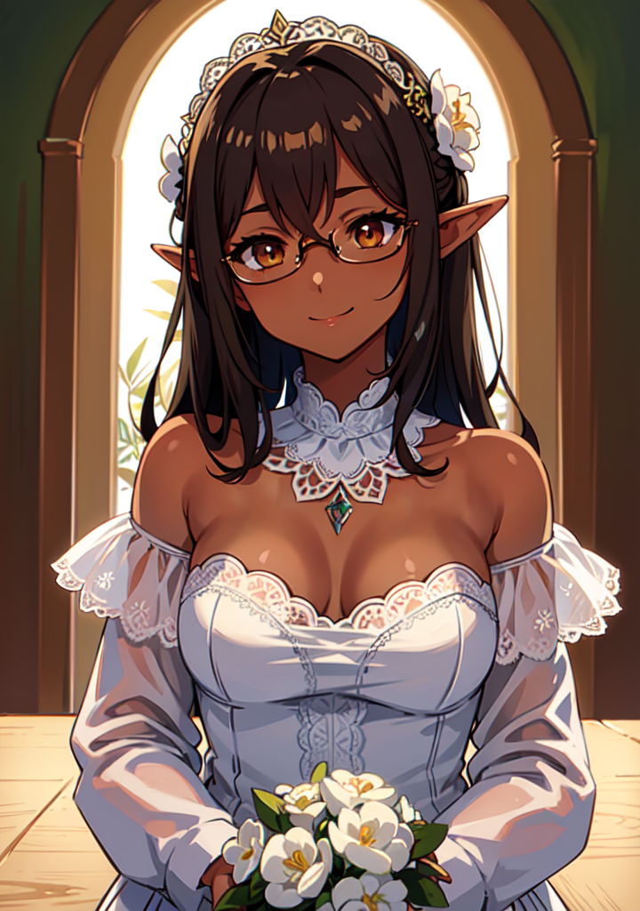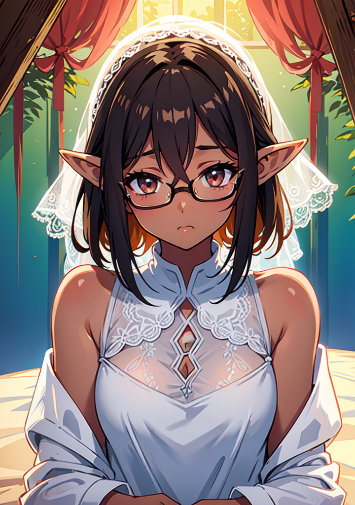 Une elfe à lunette et cheveux bruns qui se marie dans les bois stp