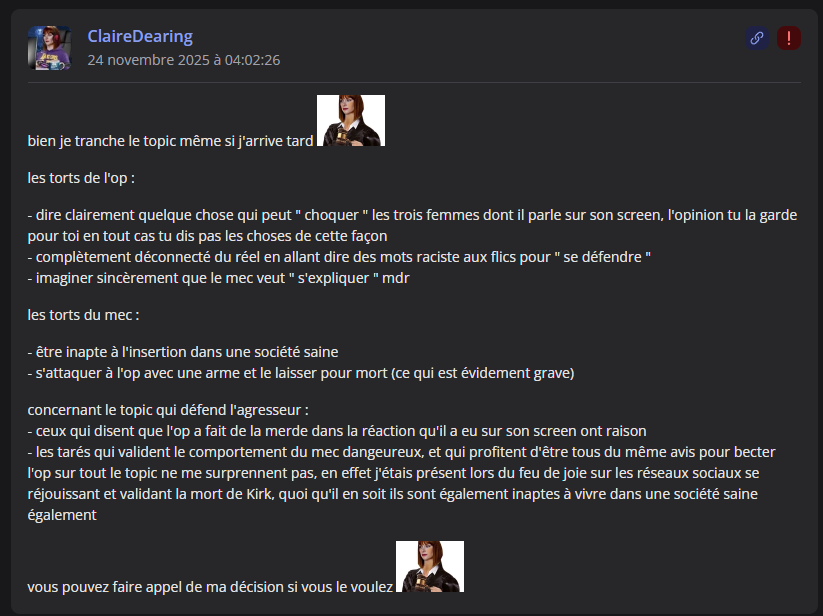 non mais ça se voit que le forum a complètement viré pro racaille si tu lis le topic et c'est en corrélation avec ce qu'on voit sur les autres topics également