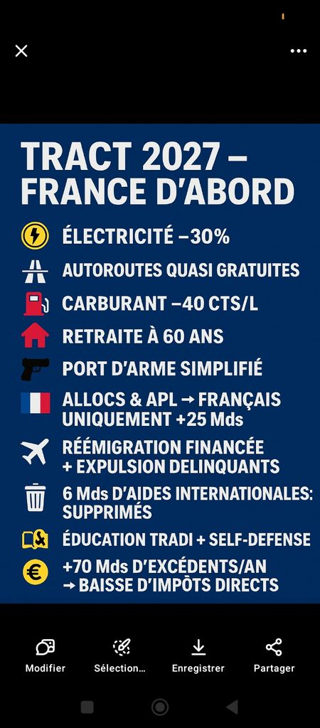 On fait pas mal d'économie ailleurs..par exemple, en supprimant les aides non contributives aux étrangers, juste ça...bah ça finance le etour à la retraite à 60 ans