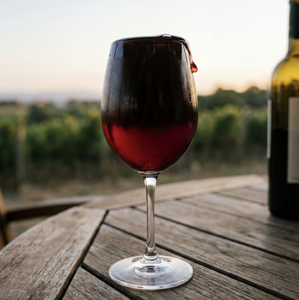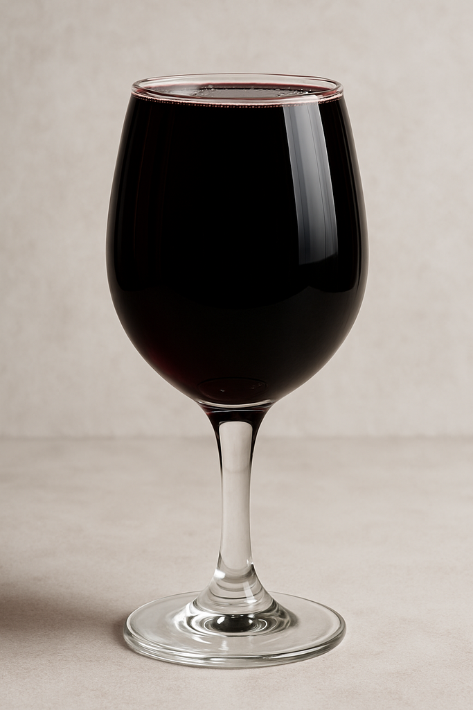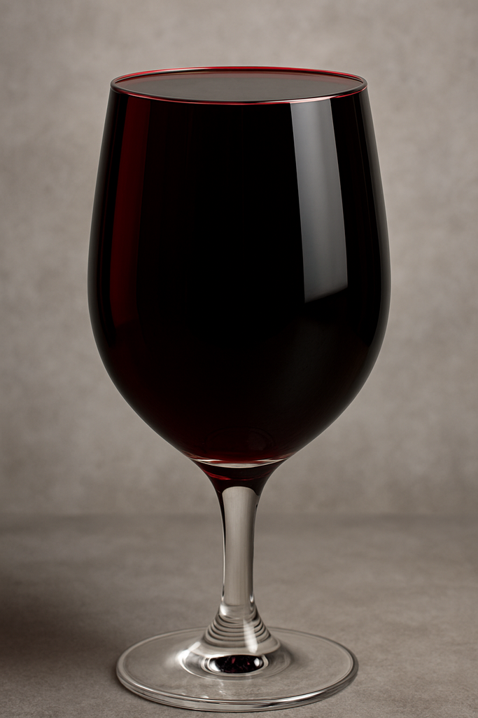 "Génère une image d'un verre de vin rouge rempli à ras bord. Il devrait être impossible d'ajouter du vin sans que le verre ne déborde"