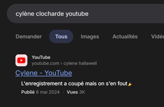 Mais il y a encore des vidéos d'elle qui circulent sur d'autres chaînes critiques (YouTube) il y a même une chanson (CYLÈNE)😂