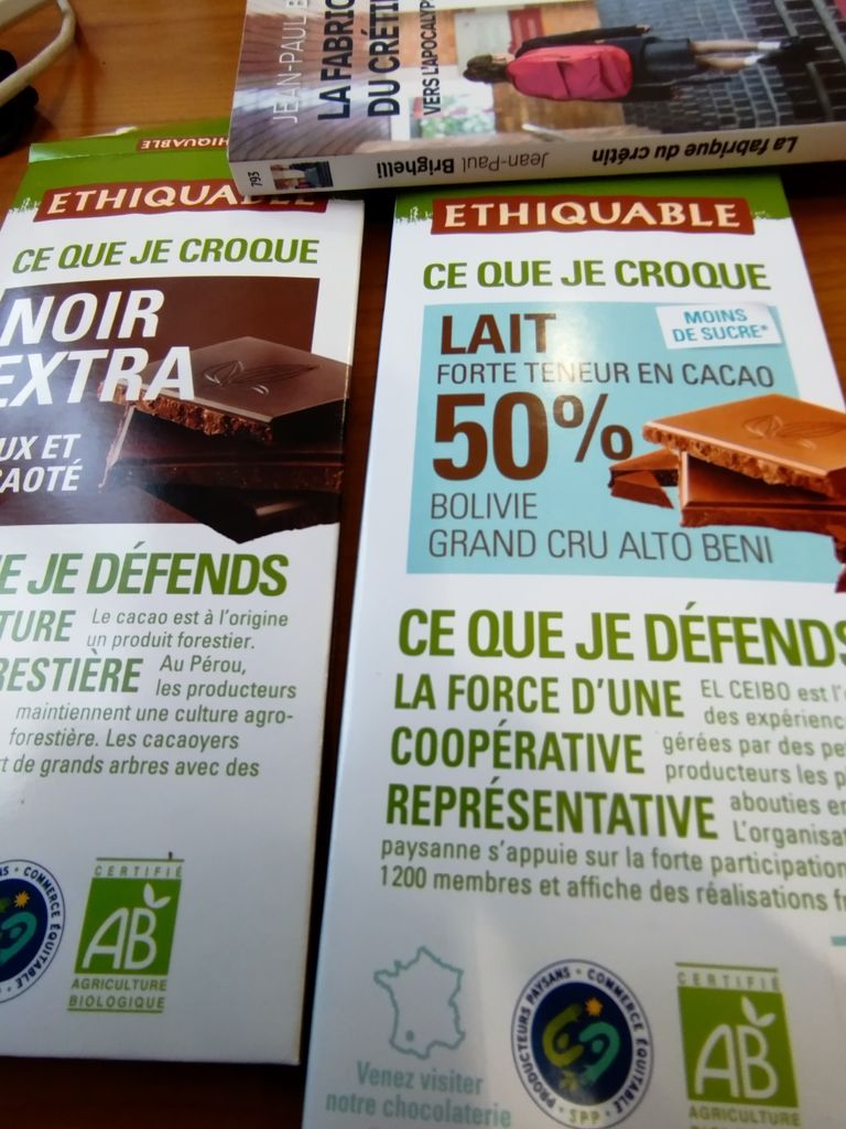 Là j'ai un chocolat noir du Pérou et un autre de Bolivie
