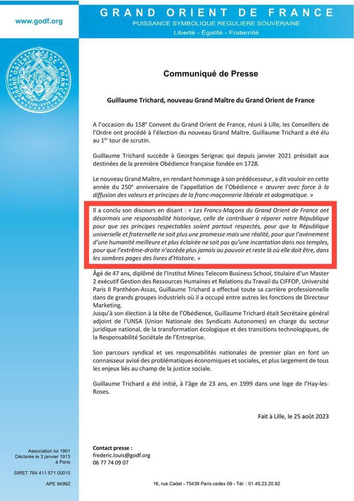 Le Frère franc-maçon Dequaire Grobel, inspecteur d’Académie, a dit à un Convent du Grand Orient en 1896 :