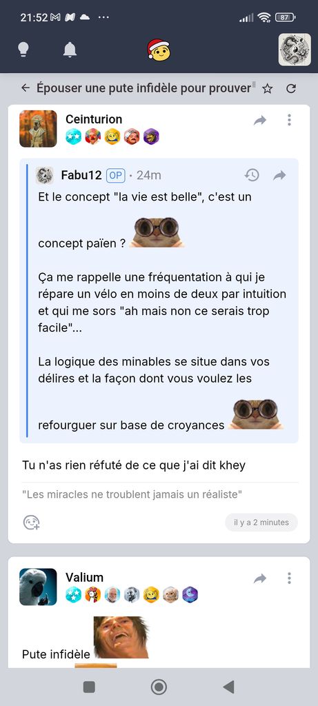 Ben écoute, tout à été dit, imagine un monde où des mecs comme toi seraient capable de créer des épreuves là où il n'y en a pas au nom de leur vérité