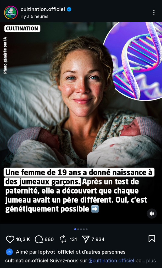 Cette pute qui s'est prostitué à deux mecs différents pendant sa période d'ovulation a donc été fécondé par ses deux amants.