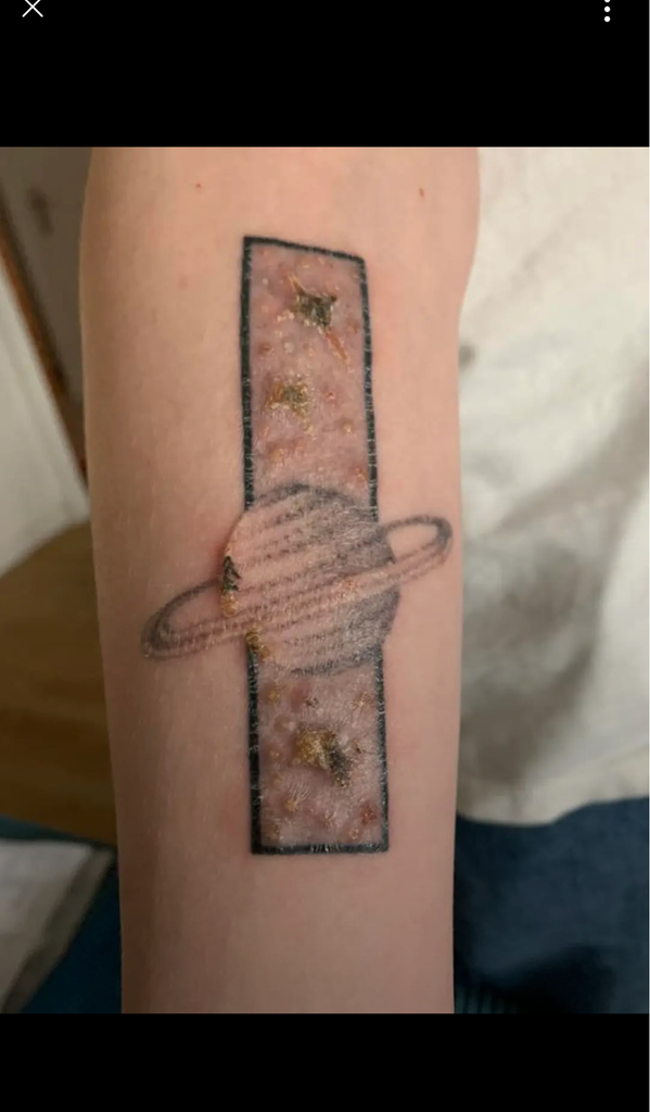 Les croutes ont permis de rajouter les etoiles qui manquaient a son tatouage
