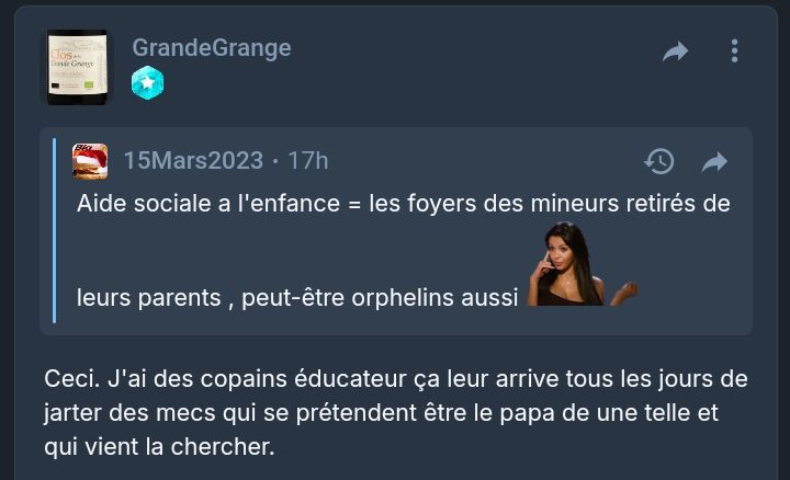 "tou lé jour mé copin éducateur chassent des proxos qui viennent leur demander si y a des mineures a embarquer"