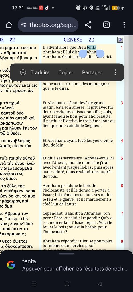 En plus de ça il a mis à l'épreuve Abraham pour savoir s'il l'aime, or, la même bible dans le livre de Jacques dit que Dieu ne tente personne, ne met personne à l'épreuve, alors que dans Genèse 22, il a mis à l'épreuve Abraham et l'a tenté.