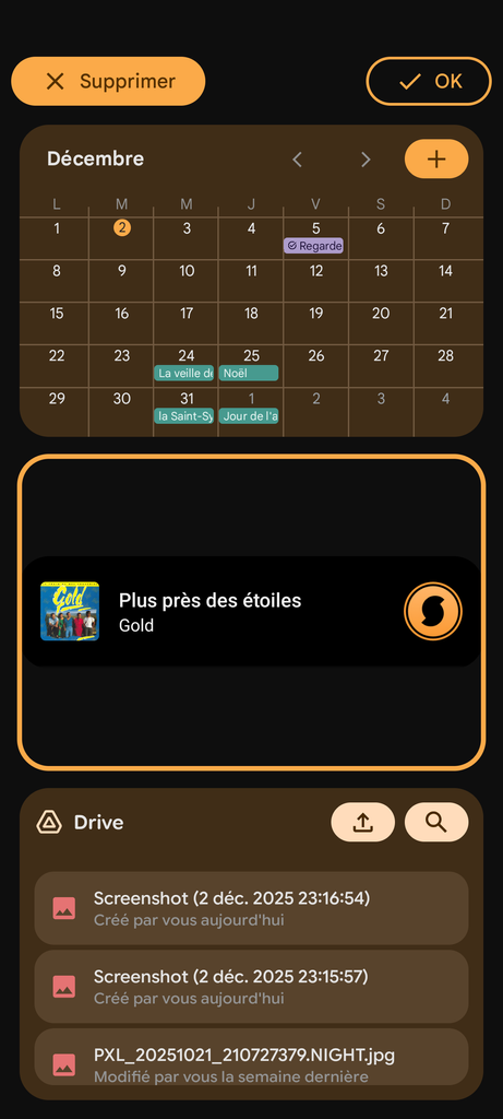 [ASTUCE] : Si vous êtes bloqué avec un widget sélectionné, appuyez dans le vide en haut, juste à côté du bouton "ok" pour faire l'option pour en disposax un nouveau