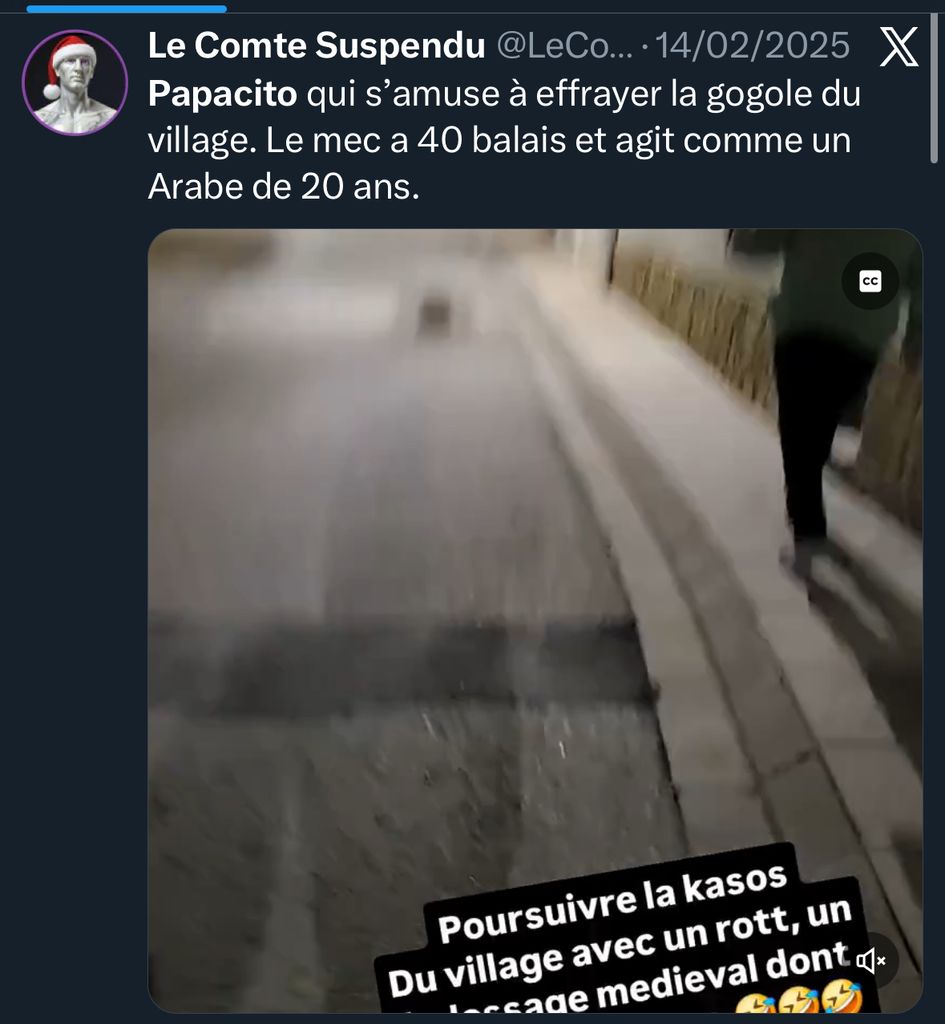 C’est criant dans la vidéo où il s’amuse à courser une handicapée alcoolique de son village espagnol avec un énorme molosse alors qu’elle est en panique et lui rigole