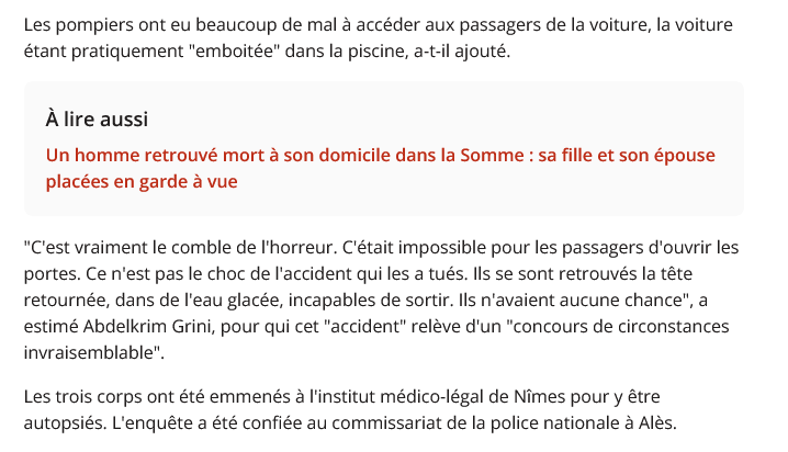Nan c'est sain comme réaction, il aurait pu perdre le contrôle ailleurs dans une aire de jeux et tuer des gamins, il aurait pu y avoir a la place de la piscine une famille qui faisait un bbq ou des gamins qui dorment sous une tente pour faire comme les indiens.