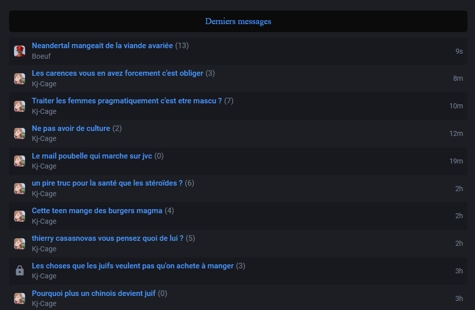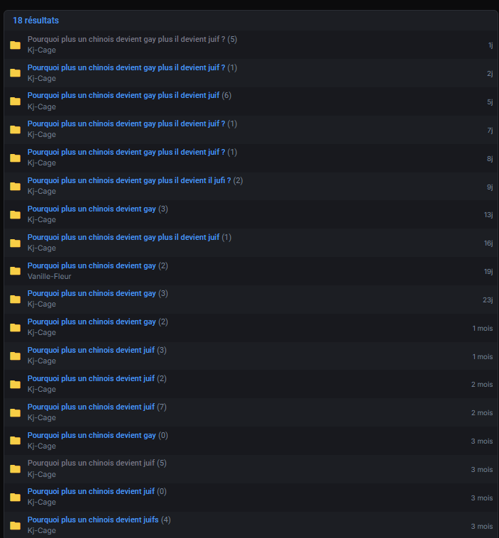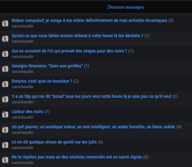 Tu me rappelle l'autre taré de Jewomenforbcc qui passait ses journées à faire des dossiers sur tout le monde.