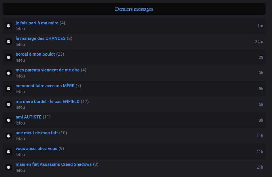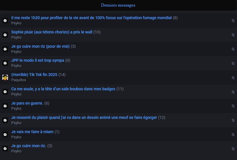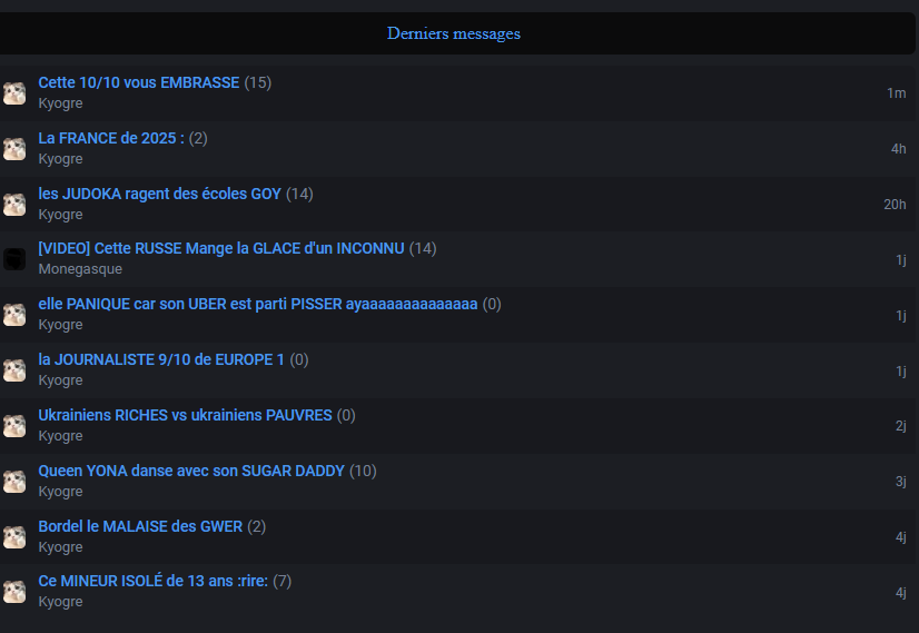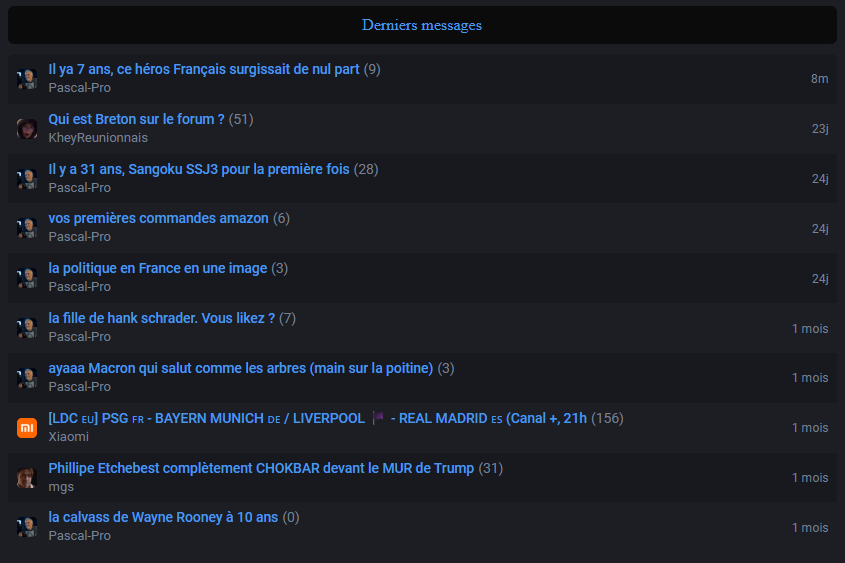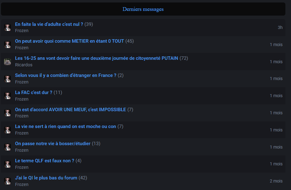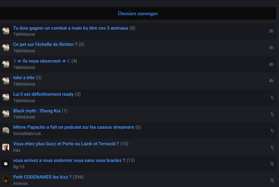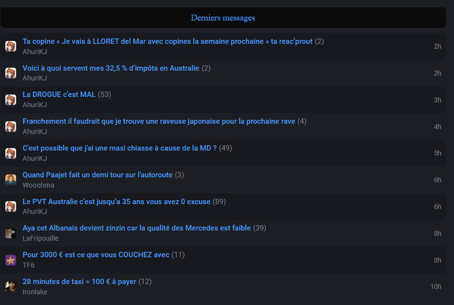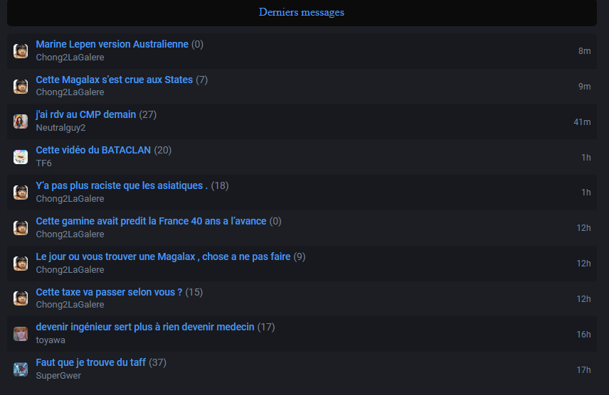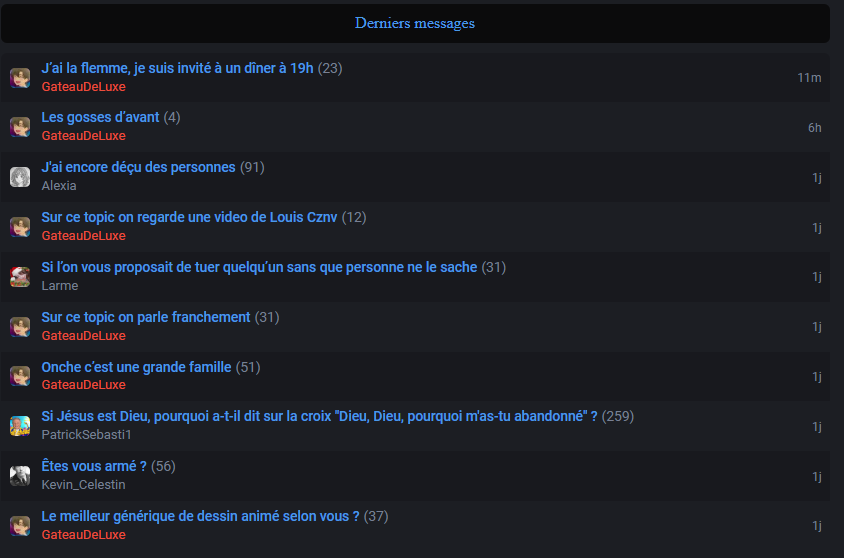- Participer en moyenne plus à vos topics qu'a ceux des autres