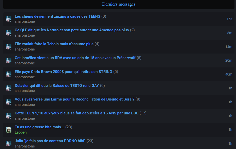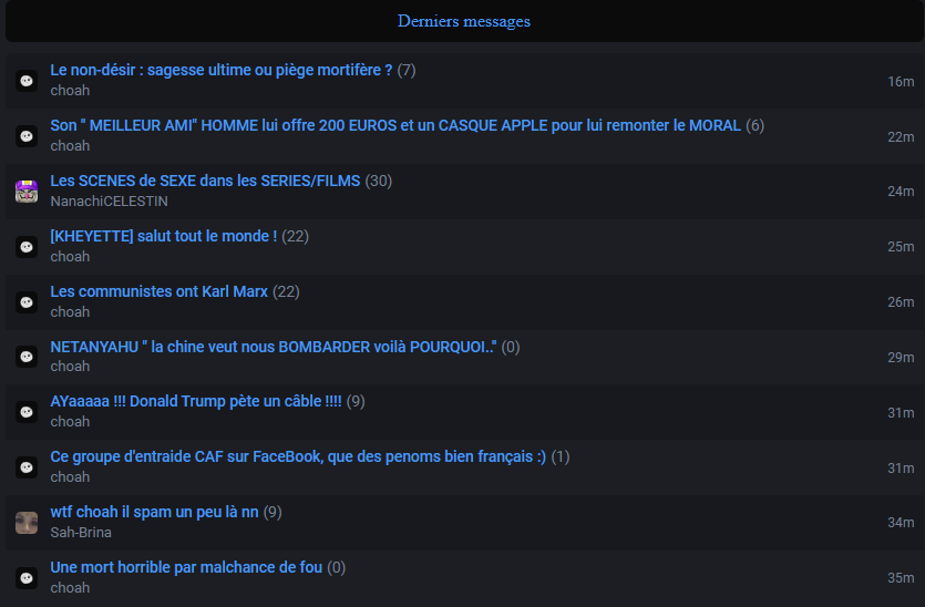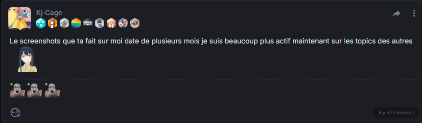 Ton screen n'est pas très représentatif en plus de mes reactions a mes topocs. Si tu t'étais attardé un peu tu aurais vu que je up de temps en temps des topocs que j'ai fais il y a plusieurs mois... voire année. Ça fais partir des habitudes que j'ai d'ou le terme de boucle temporelle. J'aime partager le contenu auprès des clés.