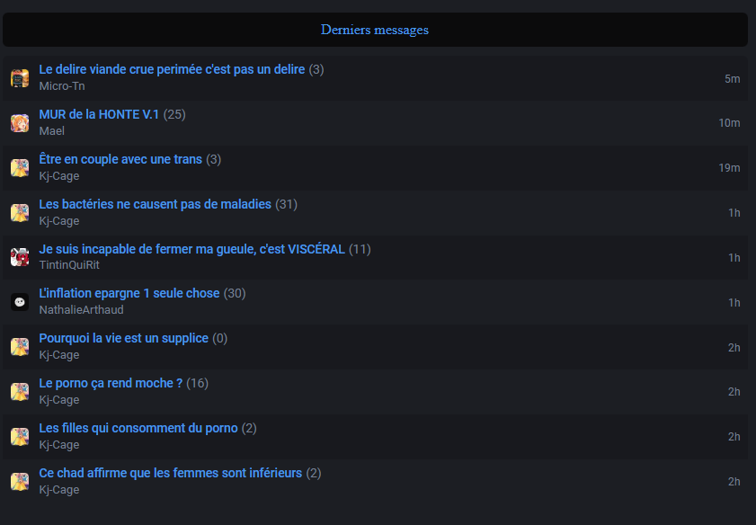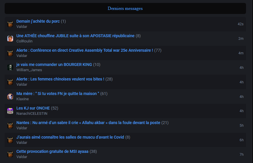 récapitulatif des AW du forum qui participent plus à leurs propre topic qu'a ceux des kheys