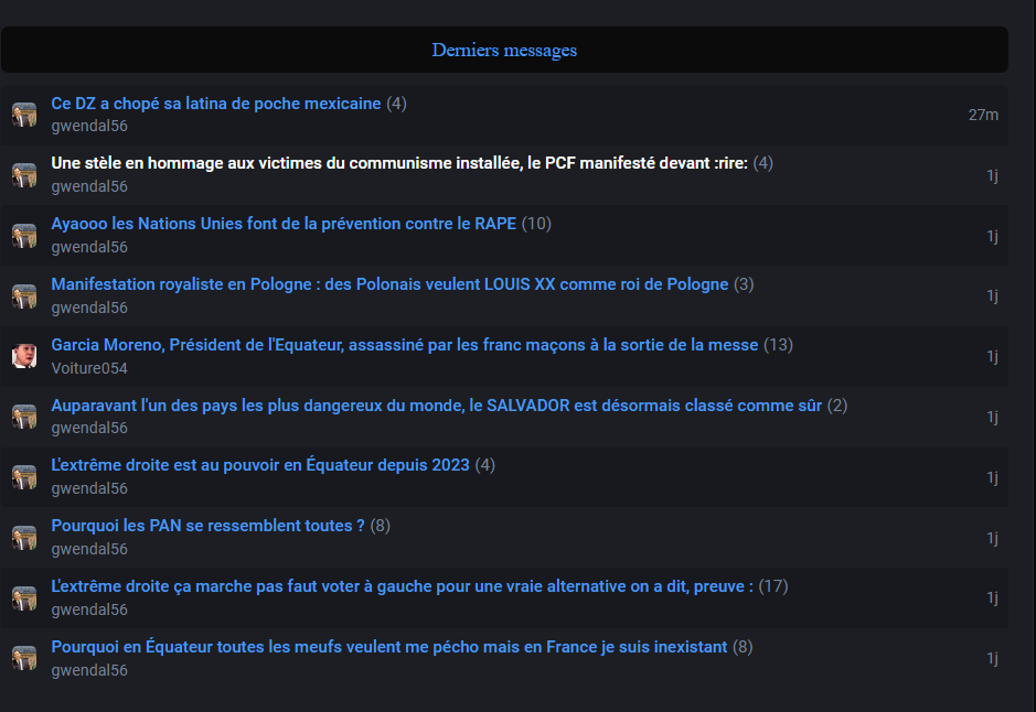 Un forumeur qui n'aime pas les comportements de meute et le communisme. Tu applique exactement les mêmes méthodes que le syndicat de la magistrature avec son mur des cons et ton topic peut inciter certains forumeurs à considérer que les kheys cités sont des indésirables sans aller vérifier par eux-mêmes, sans se faire leur propre opinion.