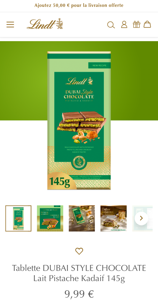 Je reviens du supermarché j'ai acheté une plaque de chocolat "dubaï style"