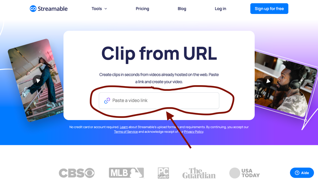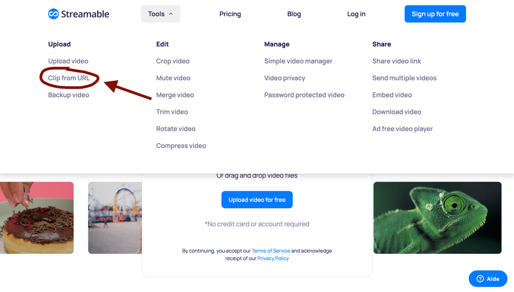 Quand tu vas sur Streamable, place ta souris sur Tools, puis clique sur “Clip from URL”.
