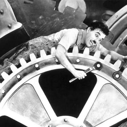 Moi je voulais bosser dans l’industrie, je trouve une photo fort à propos : Charlie Chaplin dans Les Temps modernes