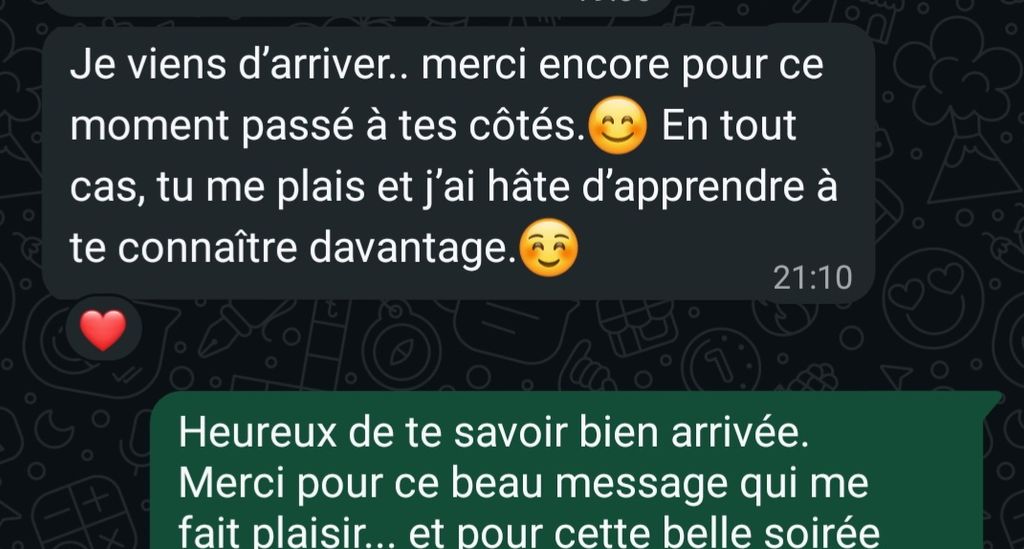 Je viens d'arriver, merci pour ce moment passé à tes côtés