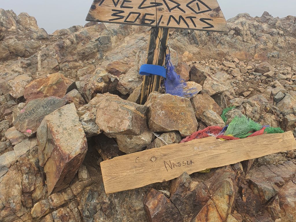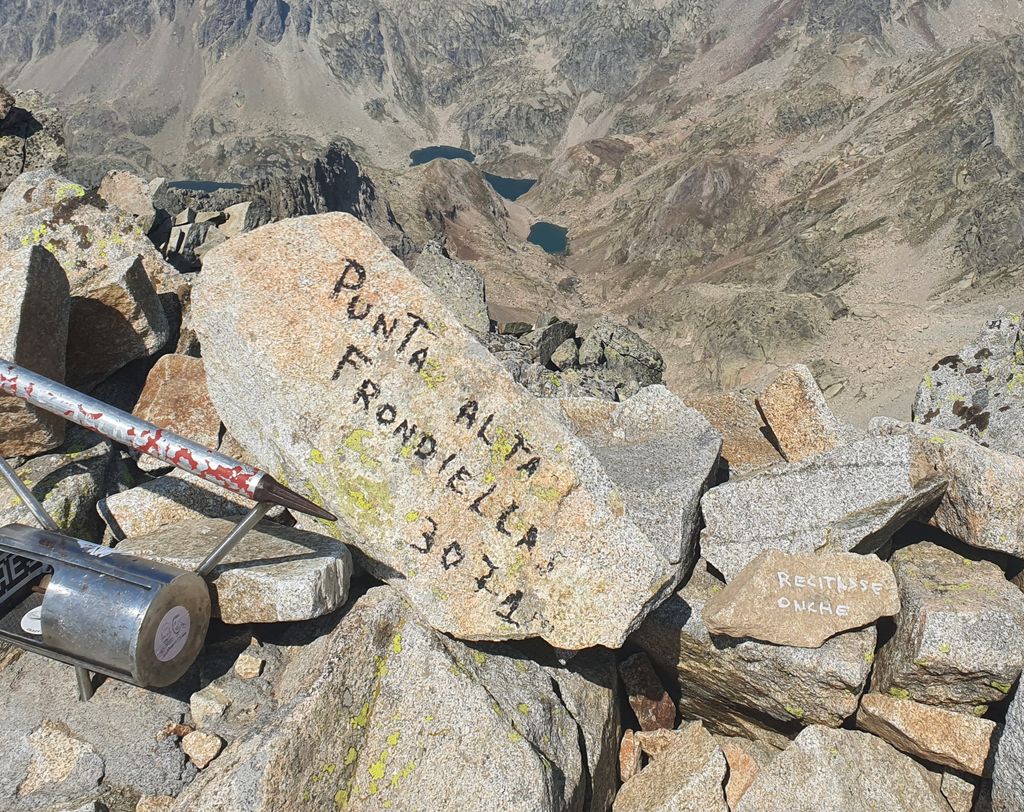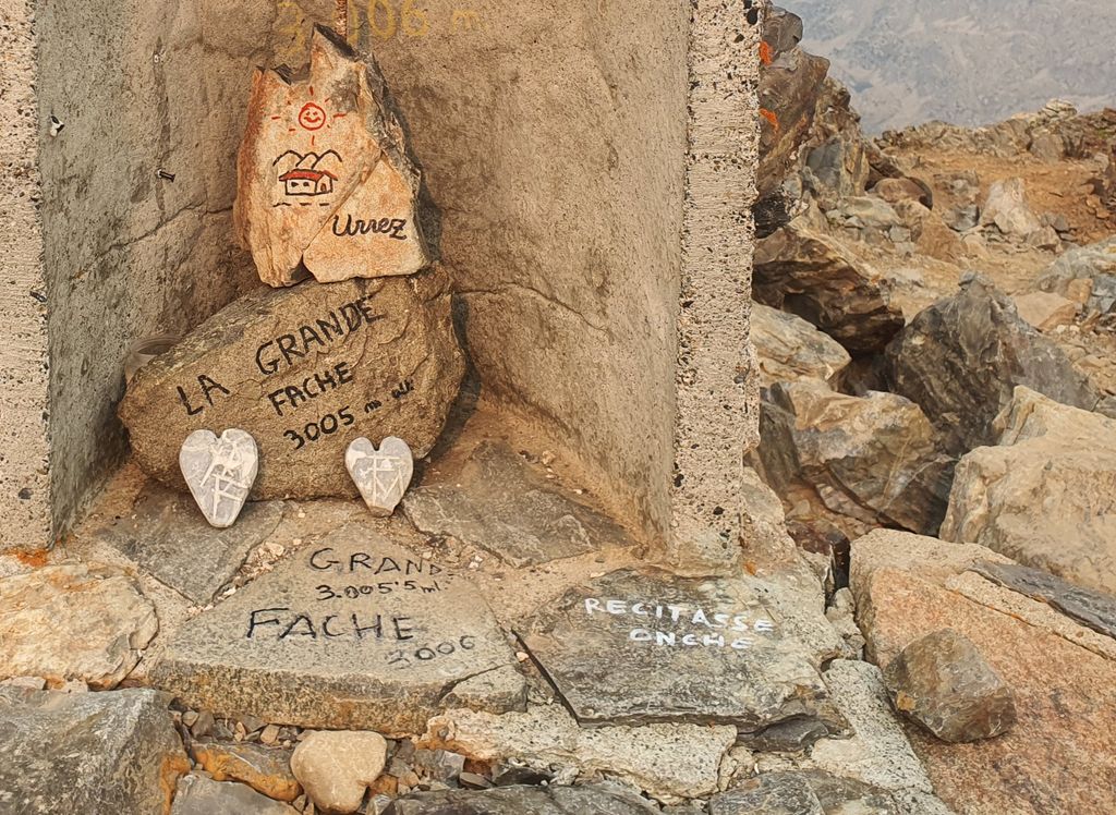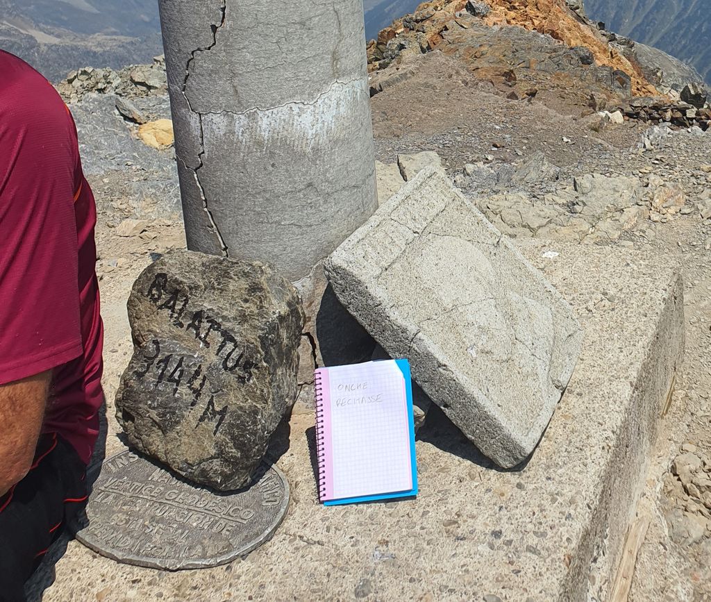 Alors... Je tiens à dire que c'était une ascension compliqué, ce n'était pas du F, j'ai vraiment dû escalader, le sommet est très étroit et je n'ai pas trouvé la pierre encore, donc j'ai écris ca moi-même