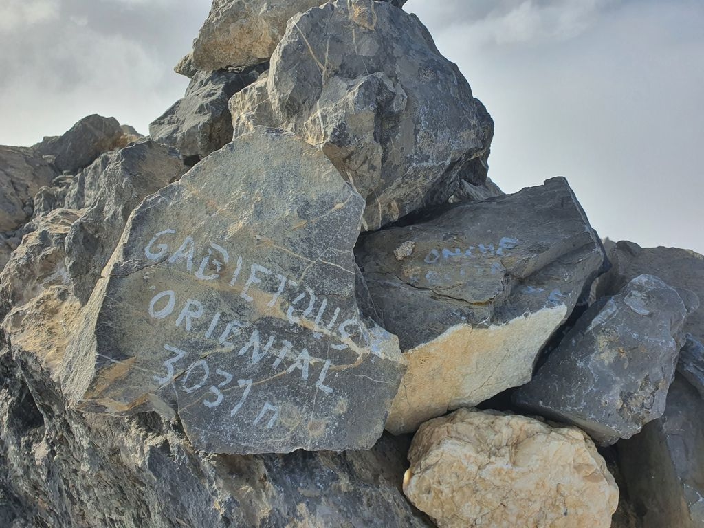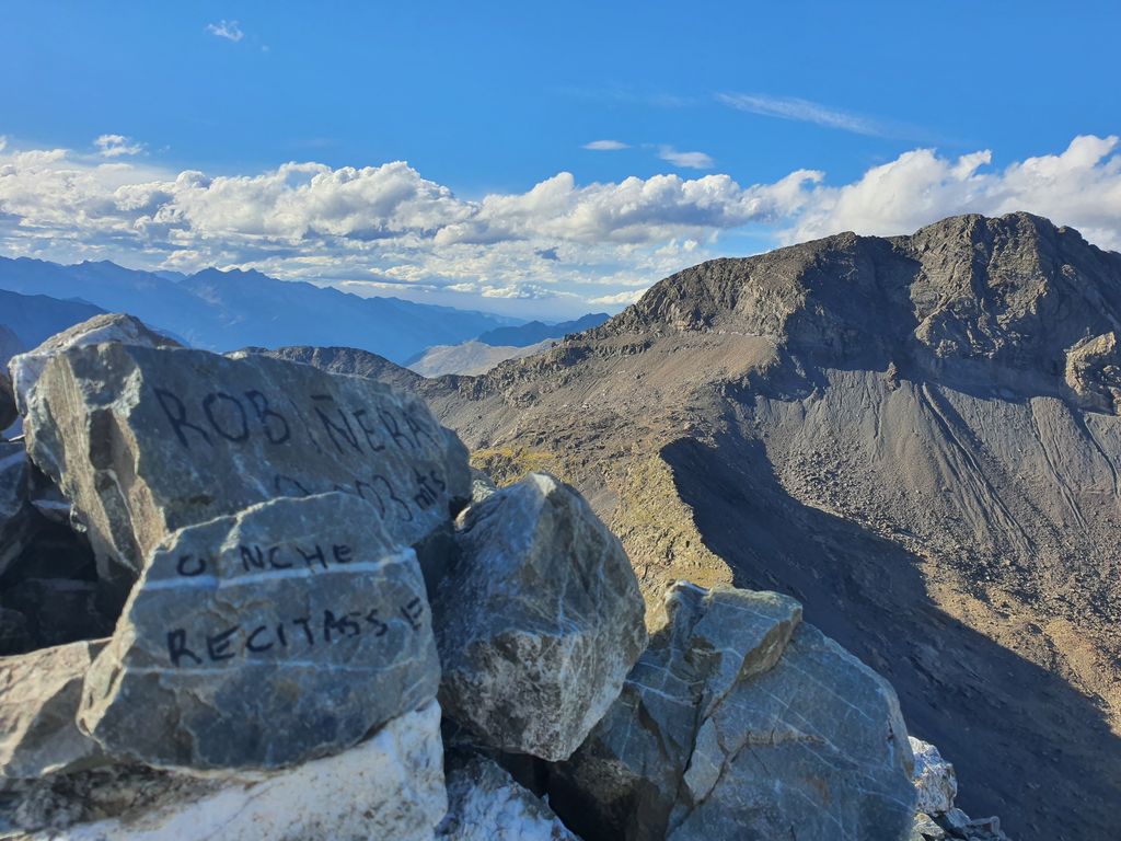Alors... Je tiens à dire que c'était une ascension compliqué, ce n'était pas du F, j'ai vraiment dû escalader, le sommet est très étroit et je n'ai pas trouvé la pierre encore, donc j'ai écris ca moi-même